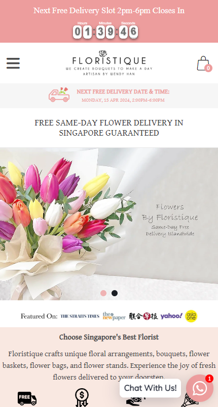 Boasting an enormous catalogue of fresh flowers, Floristique is the top florist in Singapore. Floristique provides premium flowers and efficient delivery services, along with affordable prices. Floristique’s unique personalised e-commerce business has made it possible for Singaporeans to send flowers to their loved ones for special occasions.