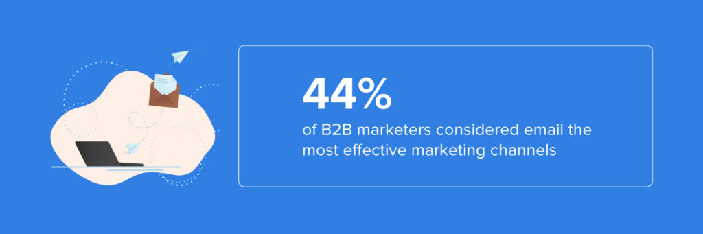 In 2022, B2B marketers utilised email as the third most commonly used owned-media platform for content distribution, and 44% of them considered email the most effective marketing channel. The reason is that the main focus of email marketing has always been to provide leads through the funnel by offering significant information during each stage, pushing towards better conversions.