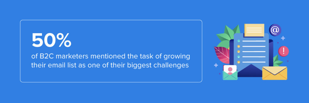 Email marketing can be a difficult channel for marketers to master, as 50% of B2C marketers mentioned the task of growing their email list as one of their biggest challenges. The reason is that B2C email marketing approaches the target audience at such a personal level, where the emotional connection is needed to bring more certainty to the brand identity and drive credibility. As a result, storytelling is one of the most important methods in B2C email marketing.