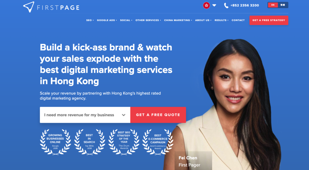 First Page has positioned itself as a leading digital marketing agency in Hong Kong. Established in 2011, it has since set the standard for what it means to deliver top-tier digital marketing services. Recognised for its unparalleled expertise, First Page is best for its Search Engine Optimisation (SEO) and Pay-Per-Click (PPC) services. Having driven over $4 billion in client revenue, it’s clear that their strategies are both innovative and effective, ensuring that businesses gain visibility online and achieve returns on their investment.