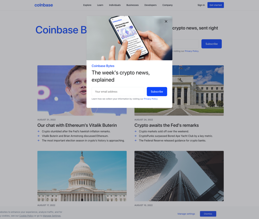 Let’s take a look at Coinbase, one of the few that use email marketing in their crypto marketing strategy.