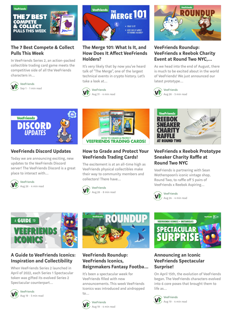 VeeFriends publishes a lot of helpful blog posts and tutorials about the industry and their products – often multiple times a day!
