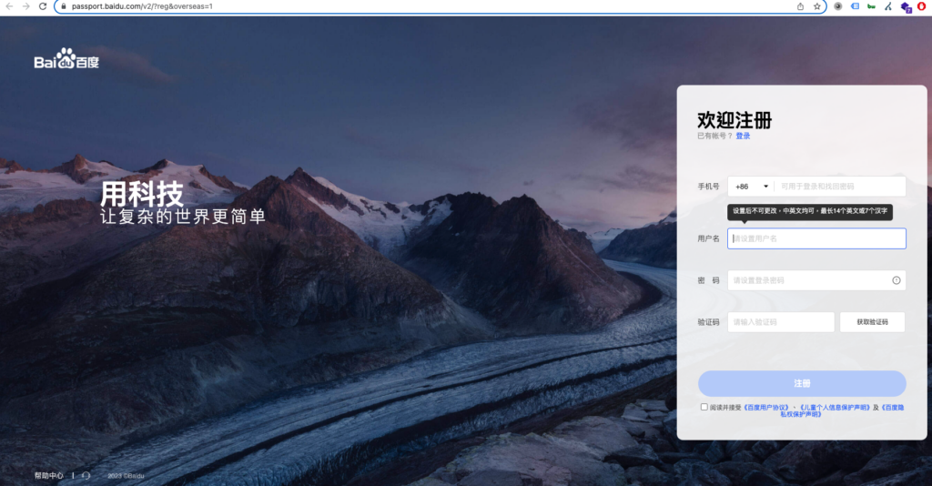 首先,請點擊此處瀏覽百度的帳戶註冊頁面。